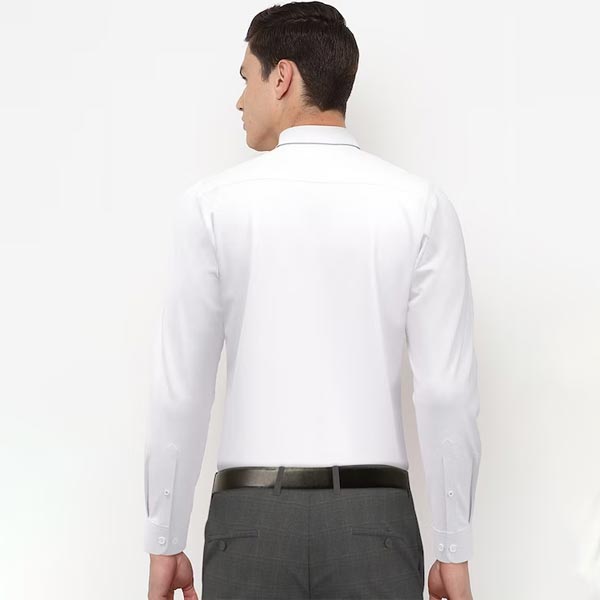 Formal & Casual shirtWhite solid opaque Formal shirt, has a spread collar, button placket, 1 patch pocket, long regular sleeves, curved hem